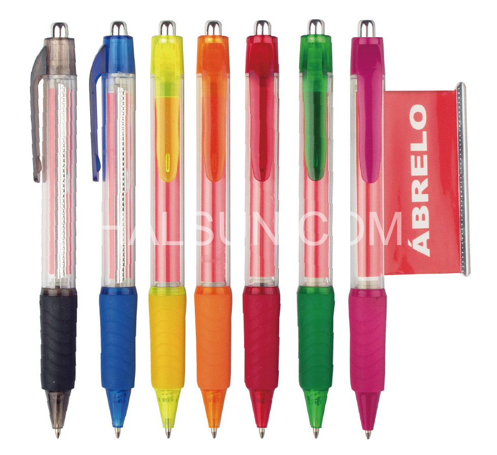 Custom Banner Pens with soft rubber grip with wave decoration are the perfect marketing tool to combine usefulness, longevity, and economical. Custom branded pens on your customers’ desk are the traditional way of promotion. With Custom Banner Pens, you can go one step further — rich valued information can be imprinted on pull out banner in size of 2.5 times of normal business card on both sides!