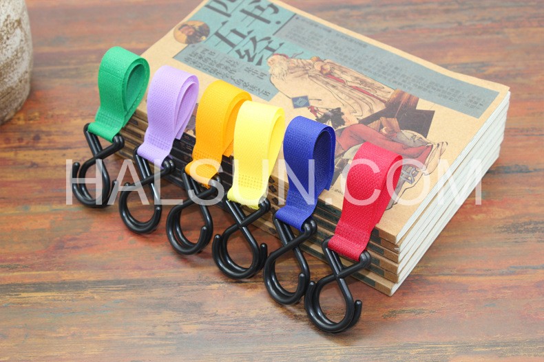 Custom logo imprinted shopping bag hooks attached to supermarket shopping chart / bike / baby chart / or anywhere with handle.