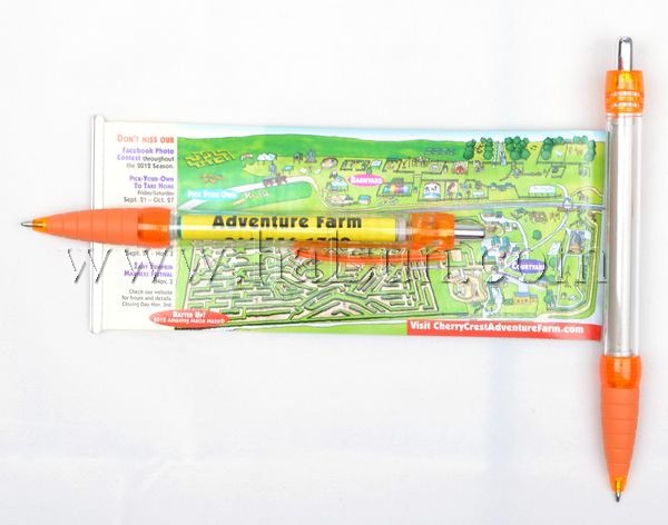 Slide out pens manufacture,exporter,wholesaler and supplier with stable quality, rapid delivery time and competitive prices to support your promotional business. Slide out pens can be very useful to travellers, new visitors to shopping mall, buildings, hotels. And you can print your promotional CI on the face side, while the detailed useful map printed on the other side. Thus, the pen is both very useful to the clients and excellent long-last advertisment for the business provider.
